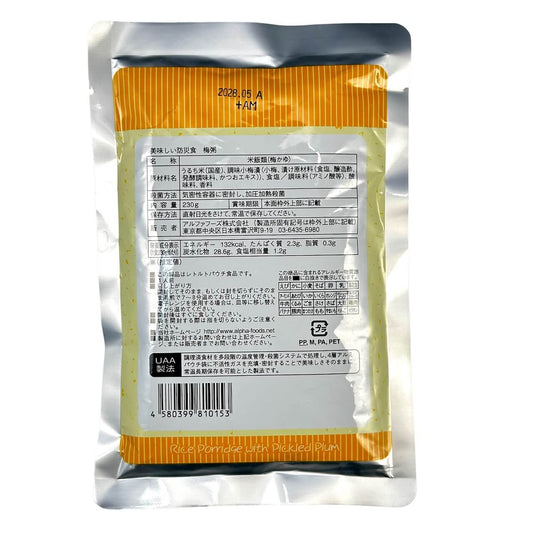 【単品売り】美味しい防災食:梅粥(製法特許第5420327号)