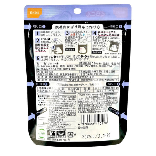 【単品売り】携帯おにぎり -昆布-