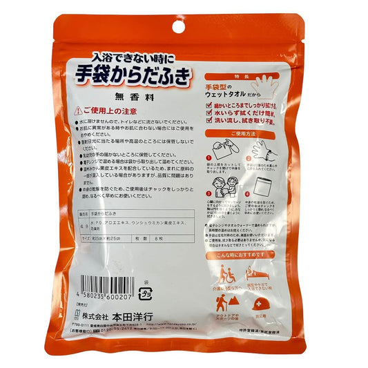 【単品売り】手袋からだふき(無香料・手袋型清拭シート・8枚入り・日本製)