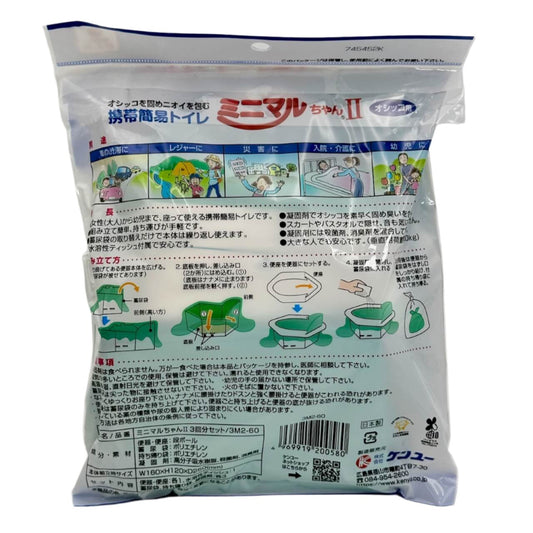 【単品売り】オシッコを固めニオイを包む 携帯簡易トイレ ミニマルちゃんII (オシッコ用 3回分セット)