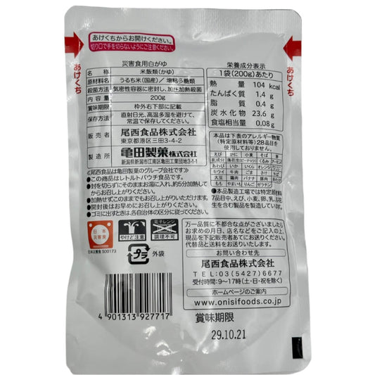 【単品売り】災害食用 白がゆ (長期保存食・アレルギー物質特定原材料等28品目不使用)